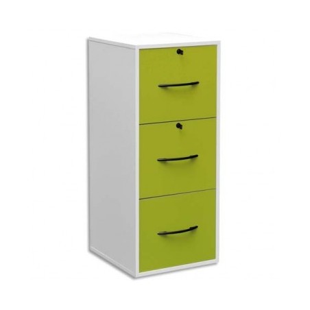 MT INTERNATIONAL Classeur mélaminé 3 tiroirs pour dossiers suspendus blanc, façade tiroir vert 42 x 101 x 44 cm