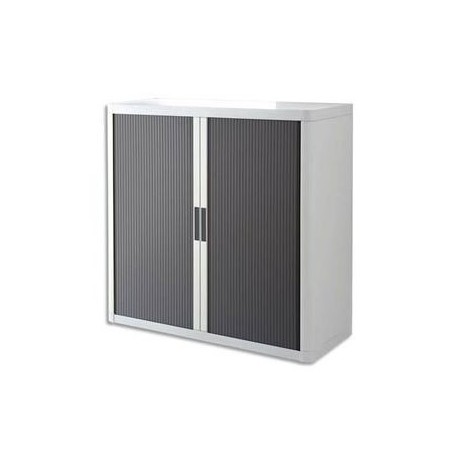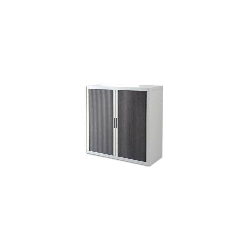 PAPERFLOW Armoire basse démontable EasyOffice corps polystyrène teinté blanc et rideau anthracite