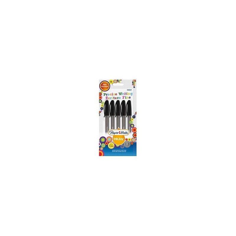 PAPERMATE Inkjoy Stylo bille capuchon. Pointe fine. Blister de 5 stylos noir.
