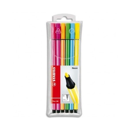 STABILO Pochette 6 feutres PEN68, pointe moyenne, coloris assortis fluo